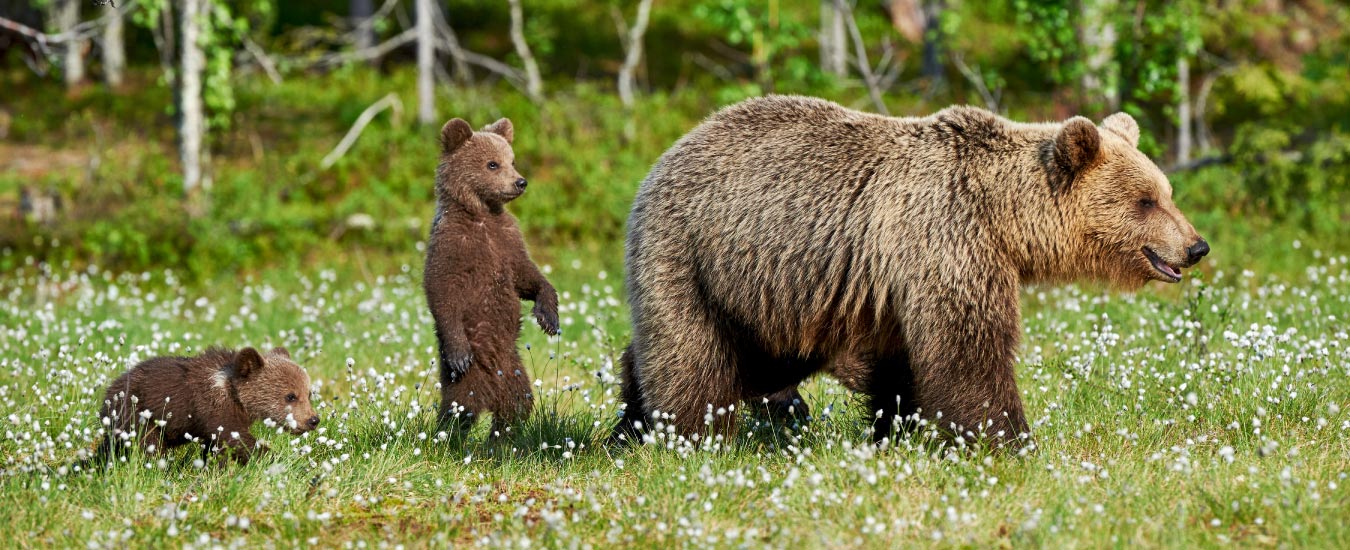 With thousands of brown bears roaming freely across Finland, you are bound to spot some in the central and eastern forest of Lakeland. Small, groggy eyes and walking at a slow pace as if they had just woken up, these bears have an uncanny resemblance to your own children. You laugh as you share this observation with your spouse, with your children frowning even as they suppress a smile.