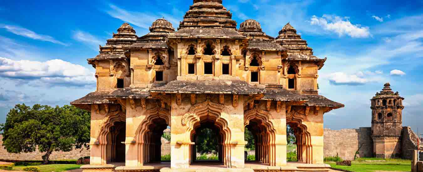 A marvel of ancient architecture that blends the Indian and Sarenic schools, Lotus Mahal is one of Hampi’s ‘must visit’ landmarks. With elaborately carved pillars, delicate cusped arches and ornately carved stone walls, if this palace could speak, it would recite hauntingly beautiful poetry that would thrill and delight.